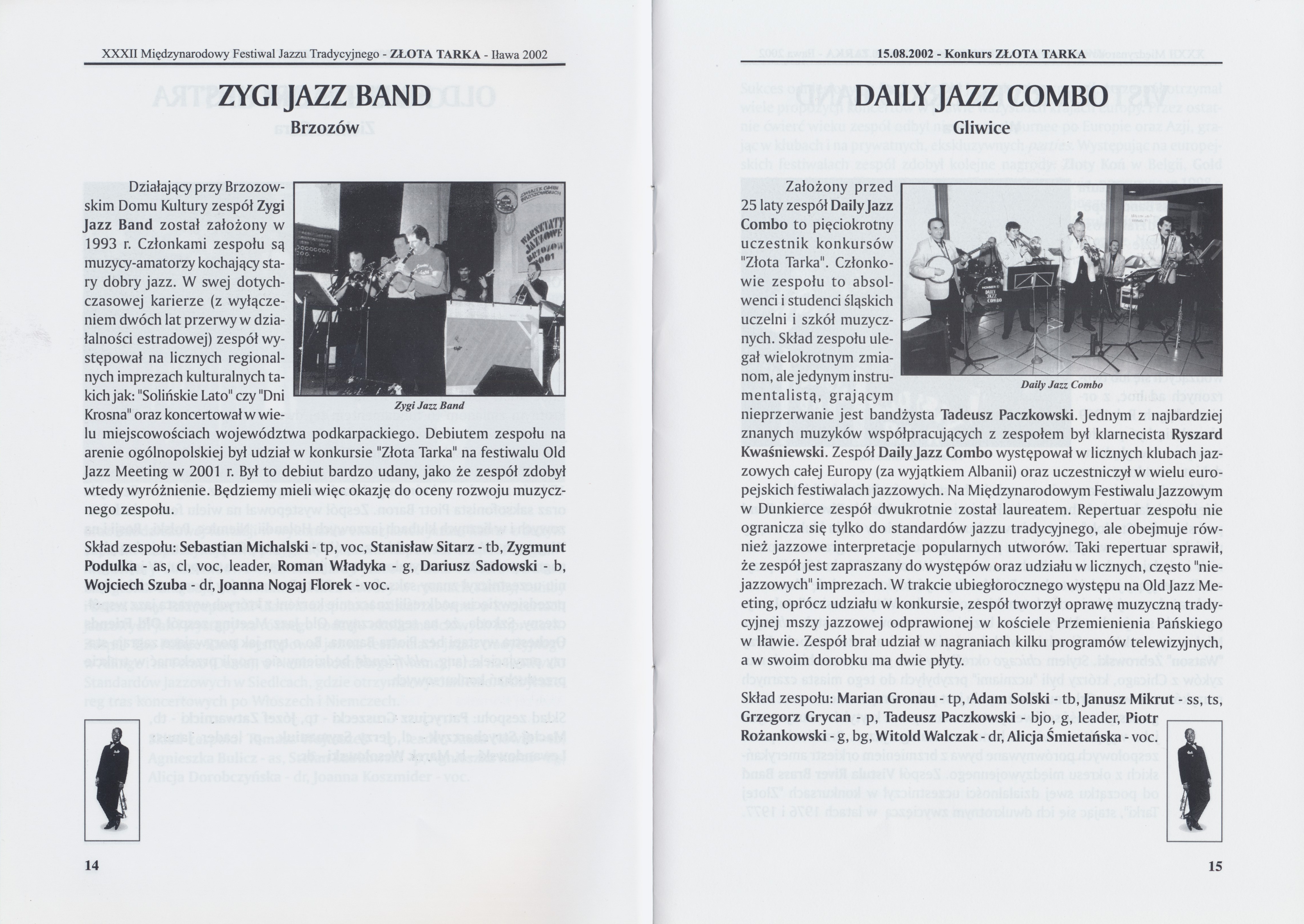 Program Międzynarodowego Festiwalu Jazzu Tradycyjnego "Złota Tarka", 15-17 sierpnia 2002 r.