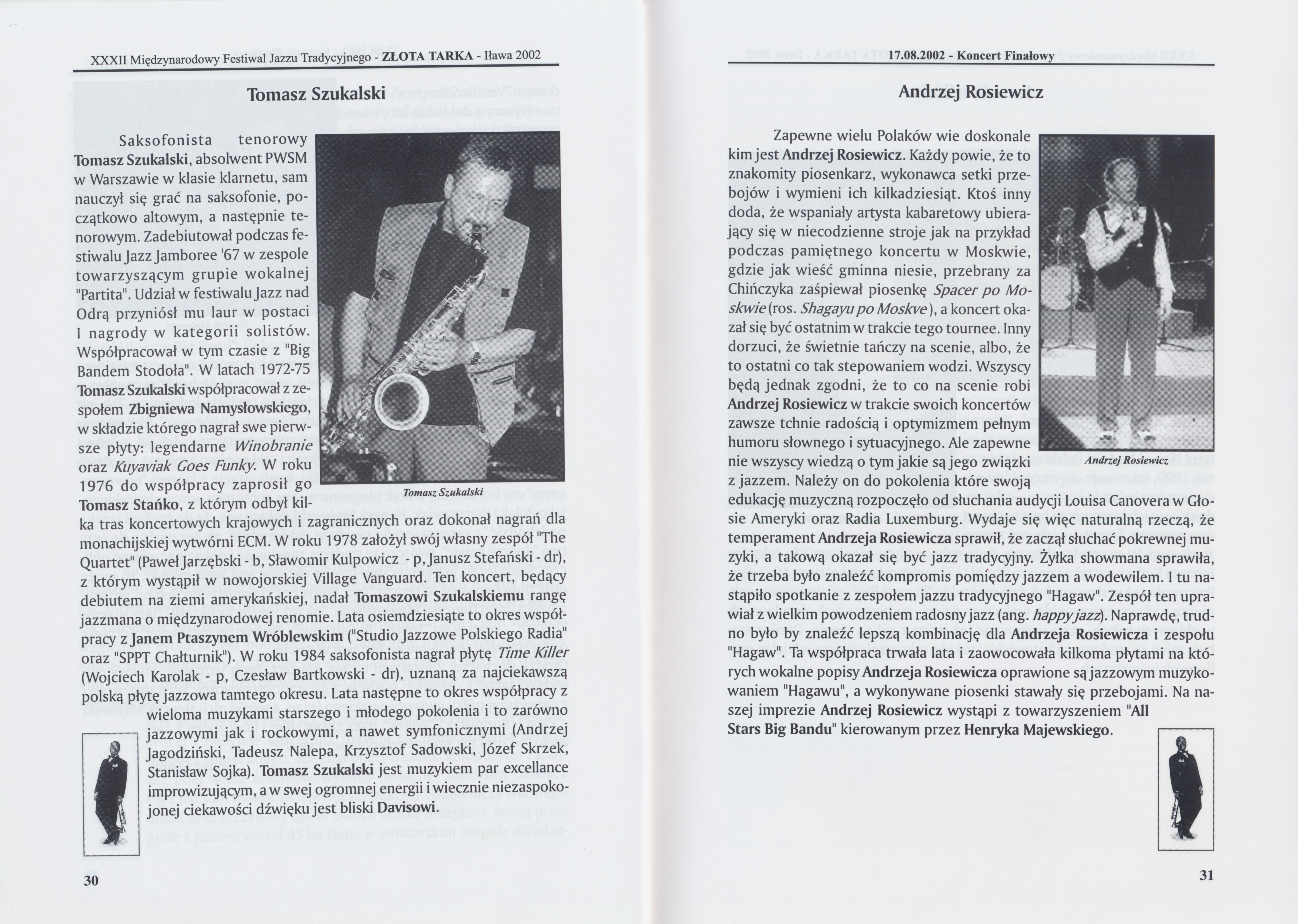 Program Międzynarodowego Festiwalu Jazzu Tradycyjnego "Złota Tarka", 15-17 sierpnia 2002 r.