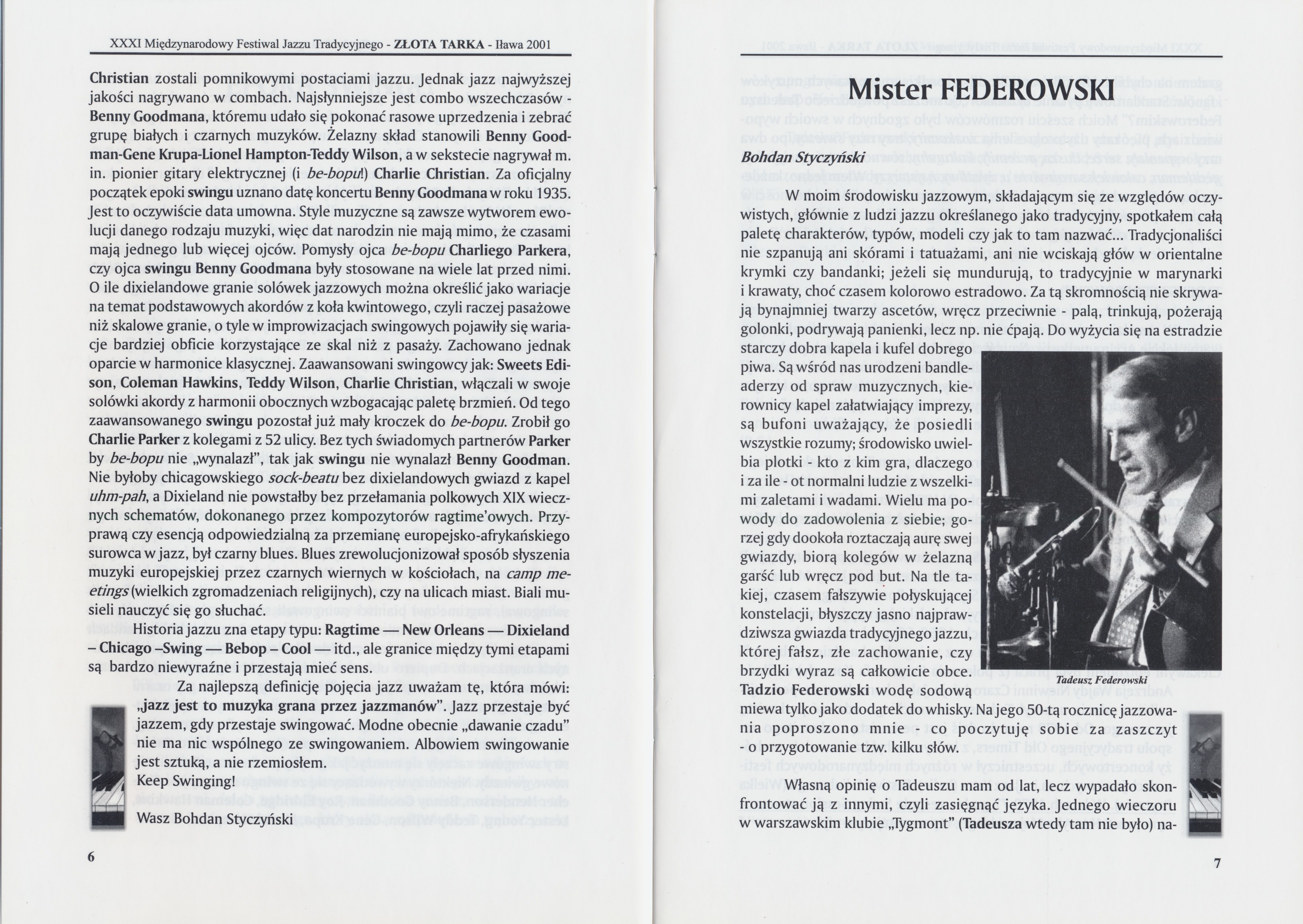 Program Międzynarodowego Festiwalu Jazzu Tradycyjnego "Złota Tarka", 16-19 sierpnia 2001 r.