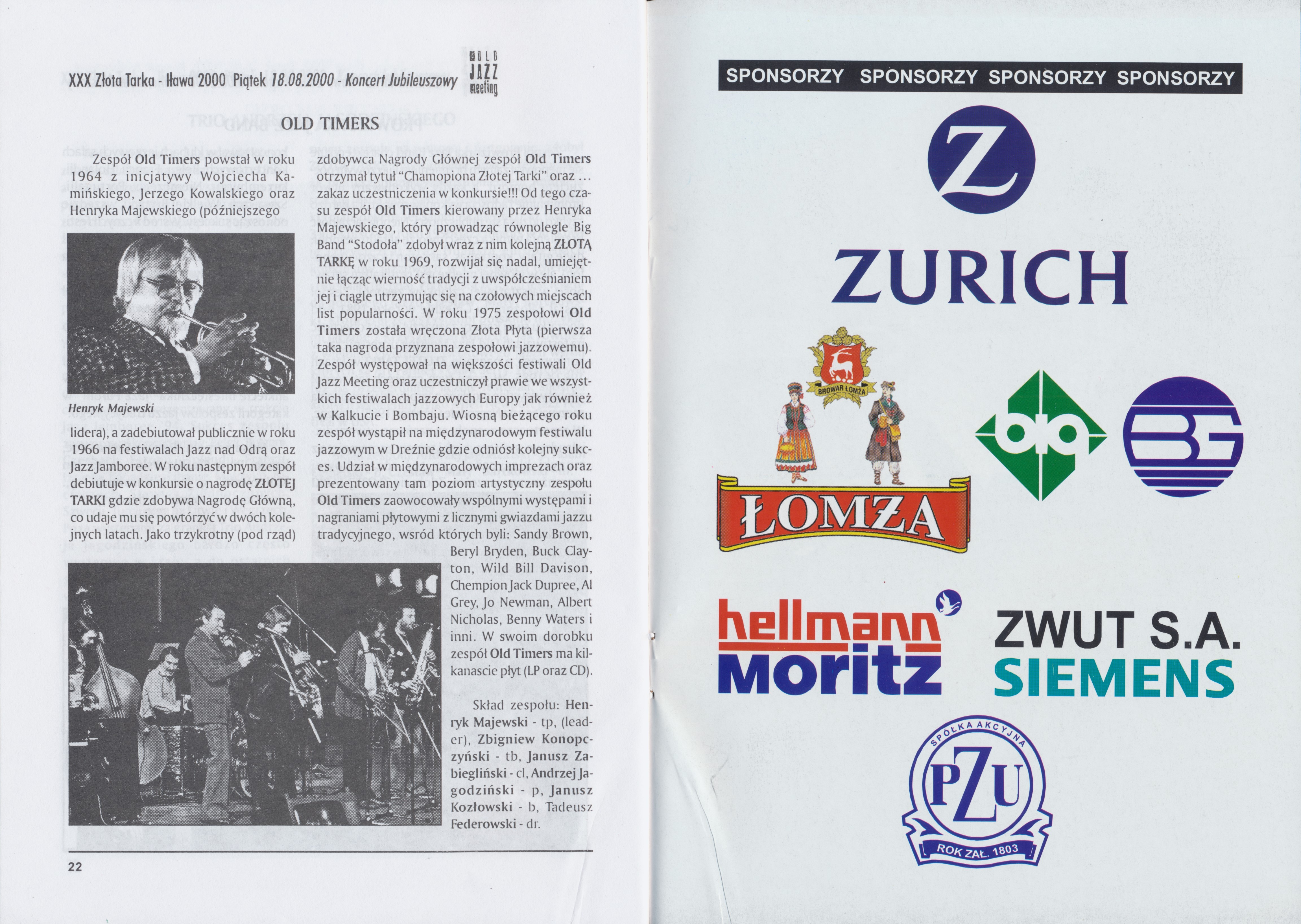 Program Międzynarodowego Festiwalu Jazzu Tradycyjnego "Złota Tarka", 17-20 sierpnia 2000 r.