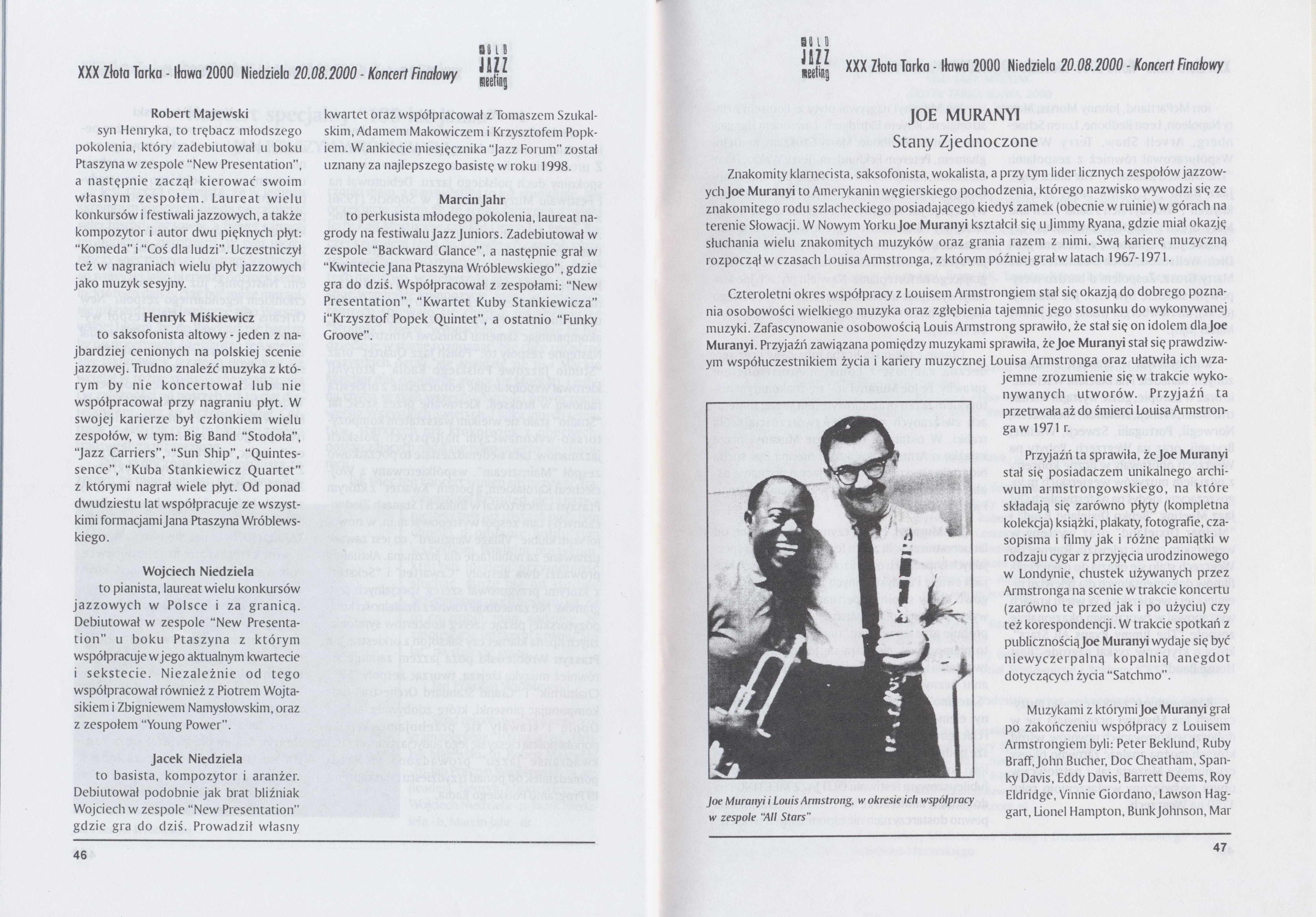 Program Międzynarodowego Festiwalu Jazzu Tradycyjnego "Złota Tarka", 17-20 sierpnia 2000 r.