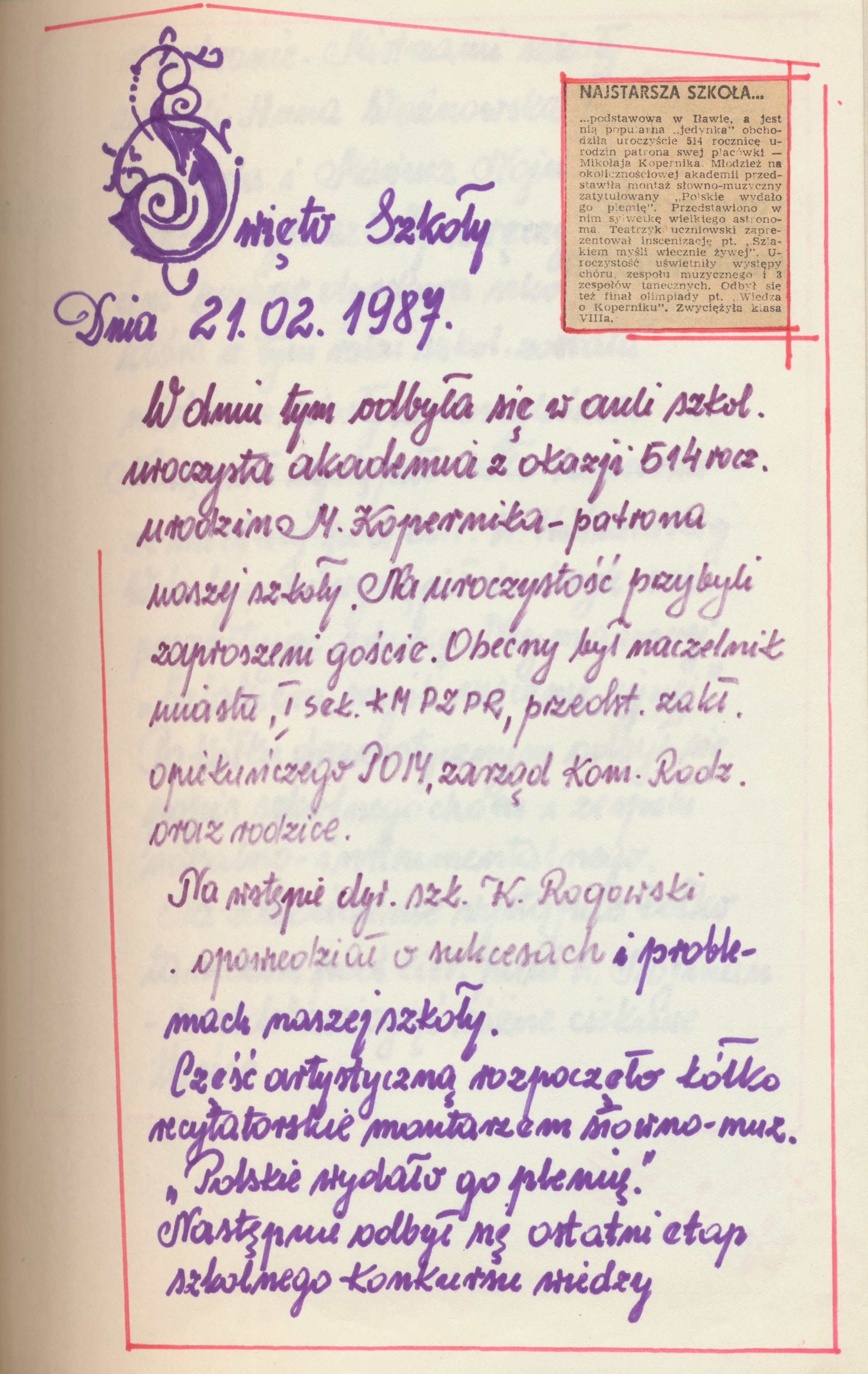 Słowa kluczowe: kronika, Mikołaj Kopernik, SP1, Szkoła Podstawowa nr 1, Kopernika, szkoła