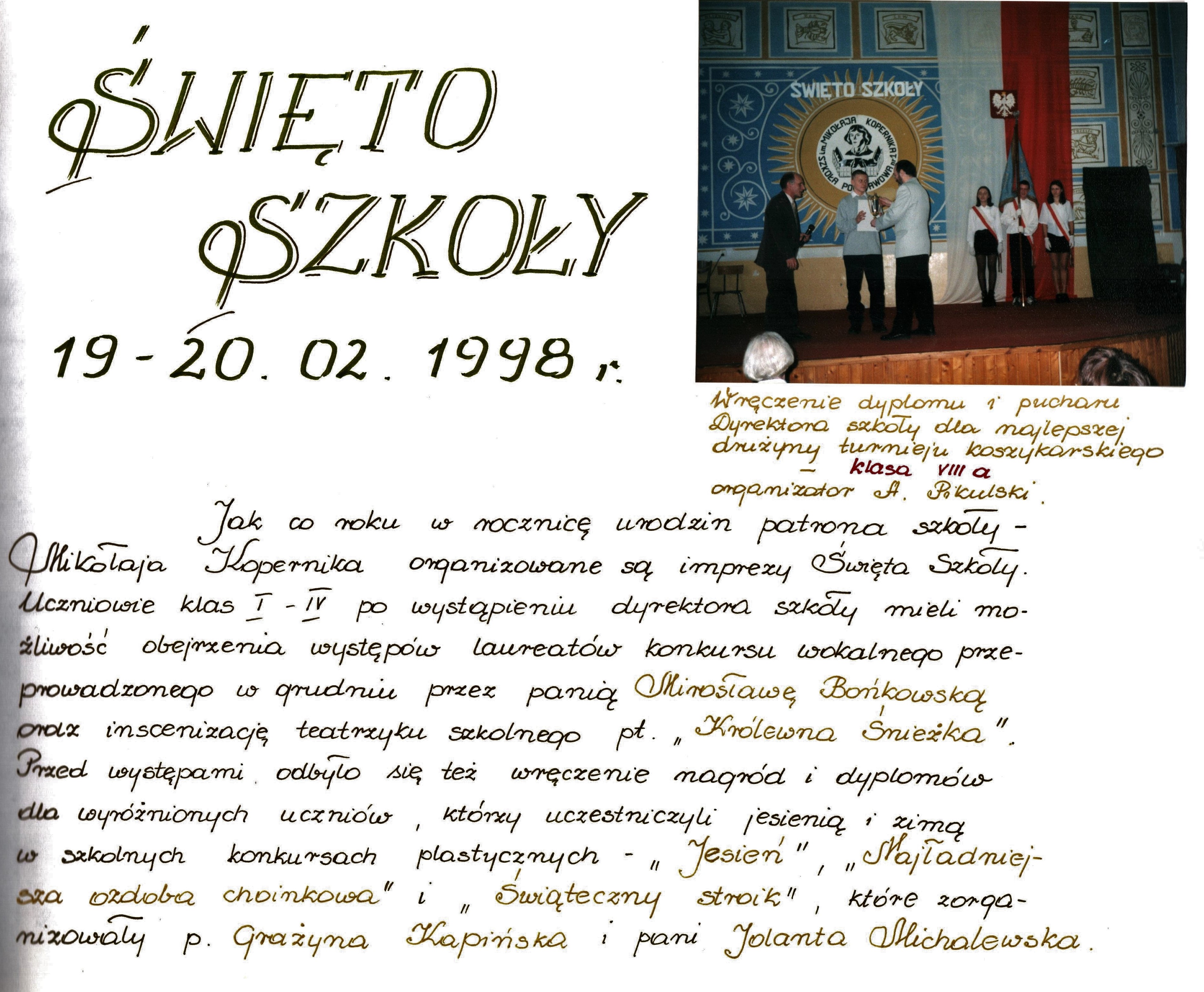 Słowa kluczowe: kronika, Mikołaj Kopernik, SP1, Szkoła Podstawowa nr 1, Kopernika, szkoła