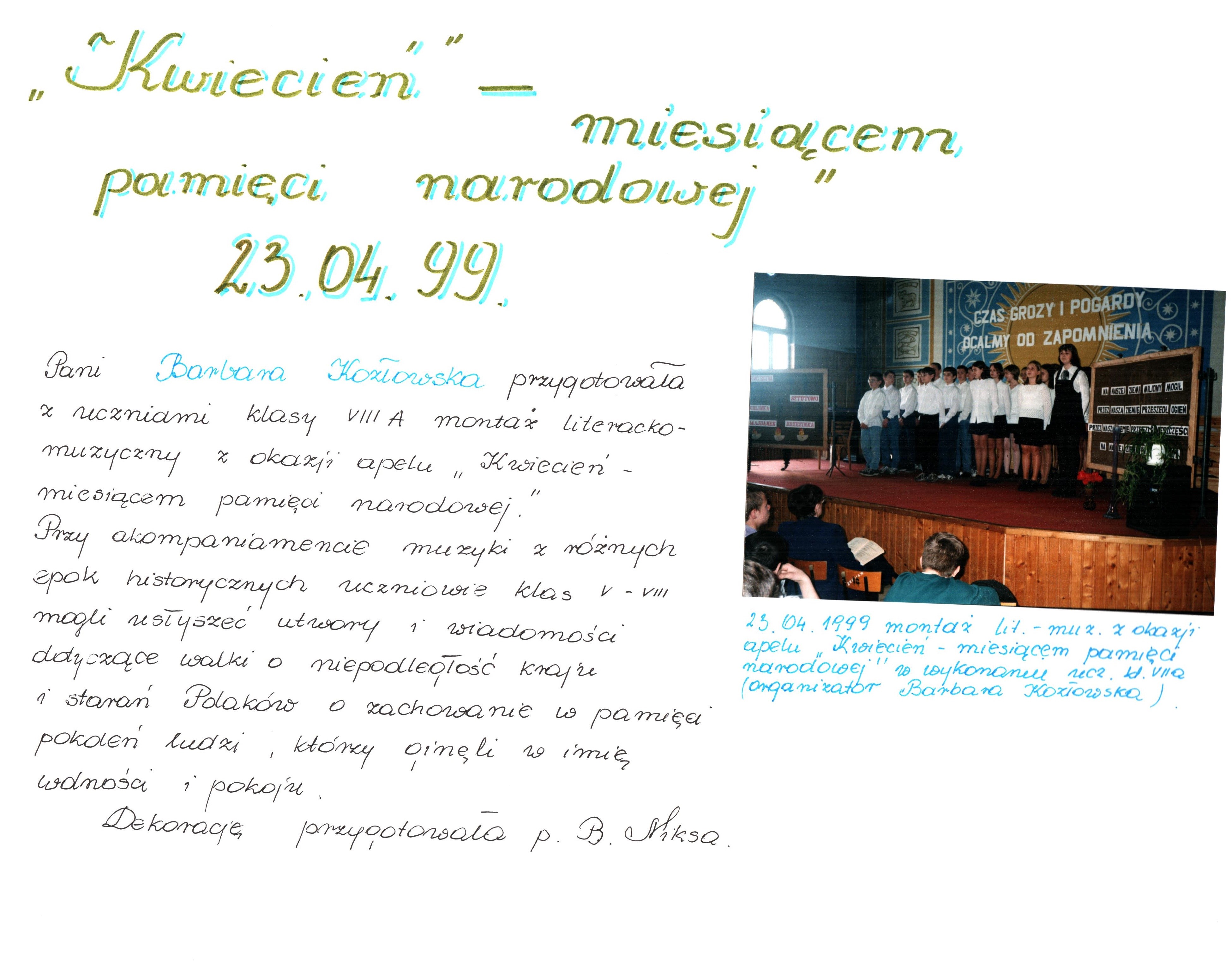 Nazwa dokumentu: Kronika Szkoły Podstawowej nr 1 cz. 9 (1997 - 1999) s. 133