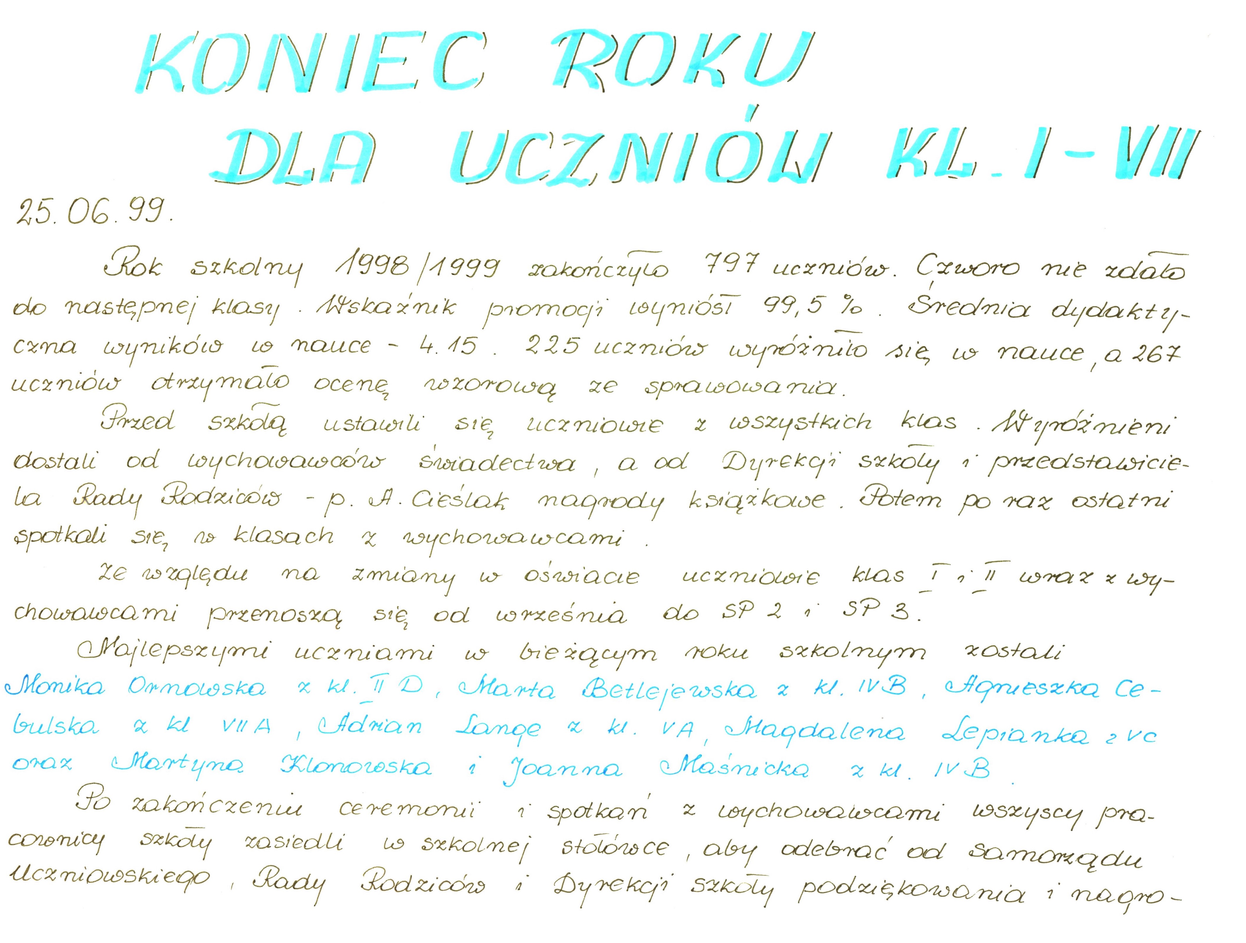 Folder: Kronika Szkoły Podstawowej nr 1 cz. 9 (1997 - 1999)