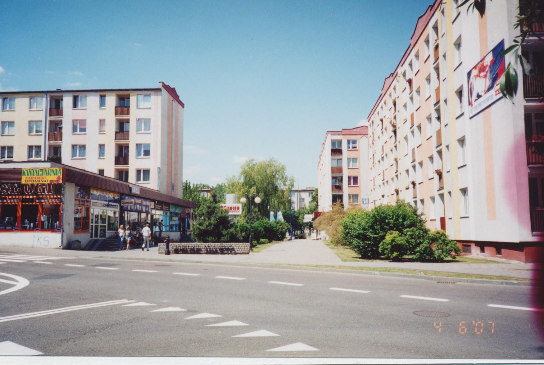 Widok na Stare Miasto w Iławie 4 czerwca 2007 rok (w centrum zdjęcia widoczny napis z nazwą osiedla). Na pierwszym planie ulica Kościelna.