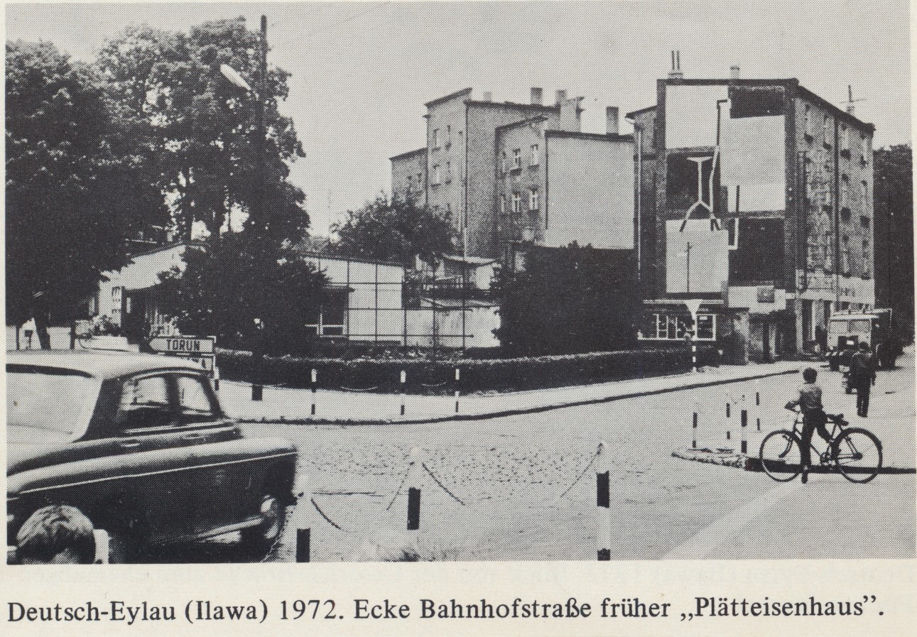 Róg ulic Bohaterów Stalingradu (niewidoczna, po lewej) - dawniej Dworcowa oraz ulicy Nowotki. W podpisie: "Róg Dworcowej - dawniej "Żelazko", bo taki kształt miał stojący tam wówczas budynek.Ulice były wówczas jeszcze brukowane. Niski biały budynek z lewej to jeden z bardzo popularnych wówczas barów mlecznych - "Jezioranka". Za nim w głąb ulicy funkcjonował jeszcze w latach 80-tych "Dom dziecka" - sklep z artykułami dla najmłodszych. Budynek w centrum fotografii to kamienica (zburzona w 2019 roku), po prawej kamienica, w której na parterze znajdowała się Składnica Harcerska, poniżej widoczny kiosk oraz po lewej od niego bzowe krzewy. Po prawej, po drugiej stronie ulicy (niewidoczne - za plecami chłopca z rowerem) - stał kolejny bar mleczny "Pod Kasztanem" - dziś w tym miejscu funkcjonuje Dom Handlowy o tej samej nazwie.