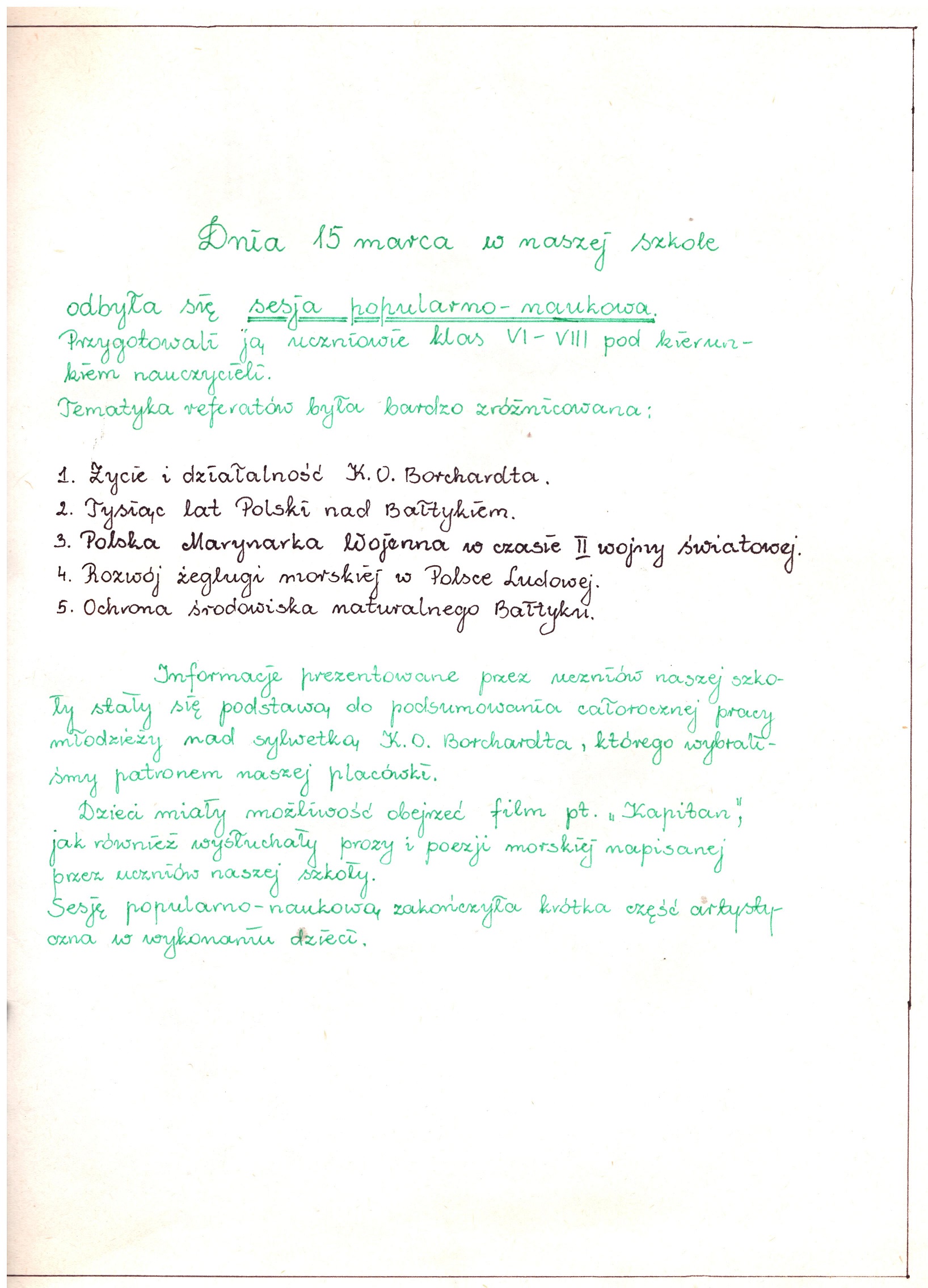 Słowa kluczowe: kronika, SP5, Karol Olgierd Borchardt, Szkoła Podstawowa nr 5, Polscy Nobliści, szkoła
