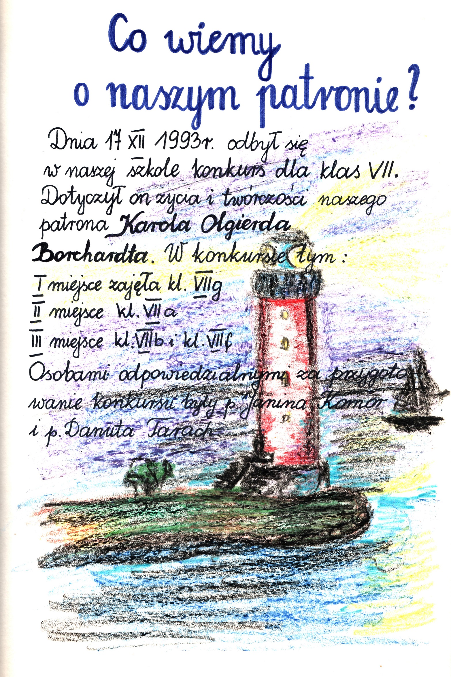 Słowa kluczowe: kronika, SP5, Karol Olgierd Borchardt, Szkoła Podstawowa nr 5, Polscy Nobliści, szkoła