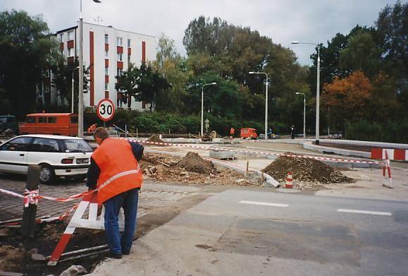 Budowa ronda ul. Dąbrowskiego/Konstytucji 3 Maja (3.09.2001)