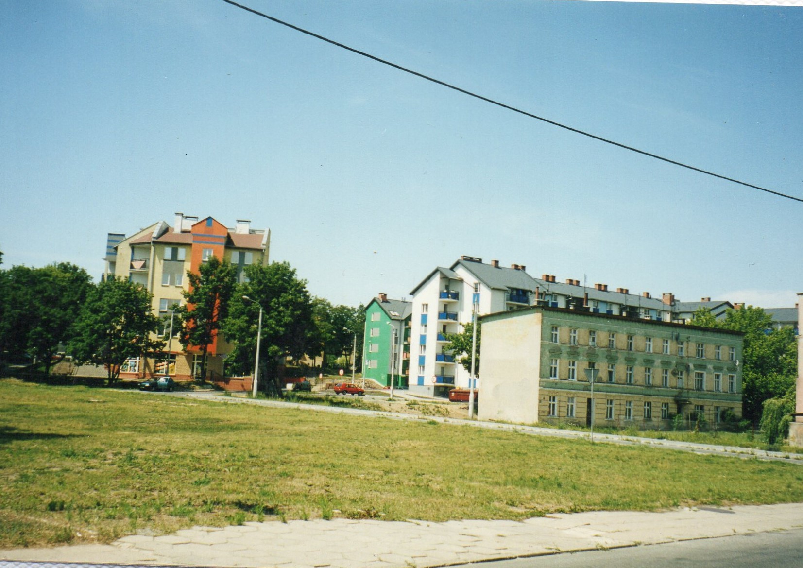 Na pierwszym planie plac, na którym niegdyś stał sklep z dywanami. Po prawej budynki mieszkalne (ul. Wojska Polskiego) oraz po lewej - ul. Andersa.