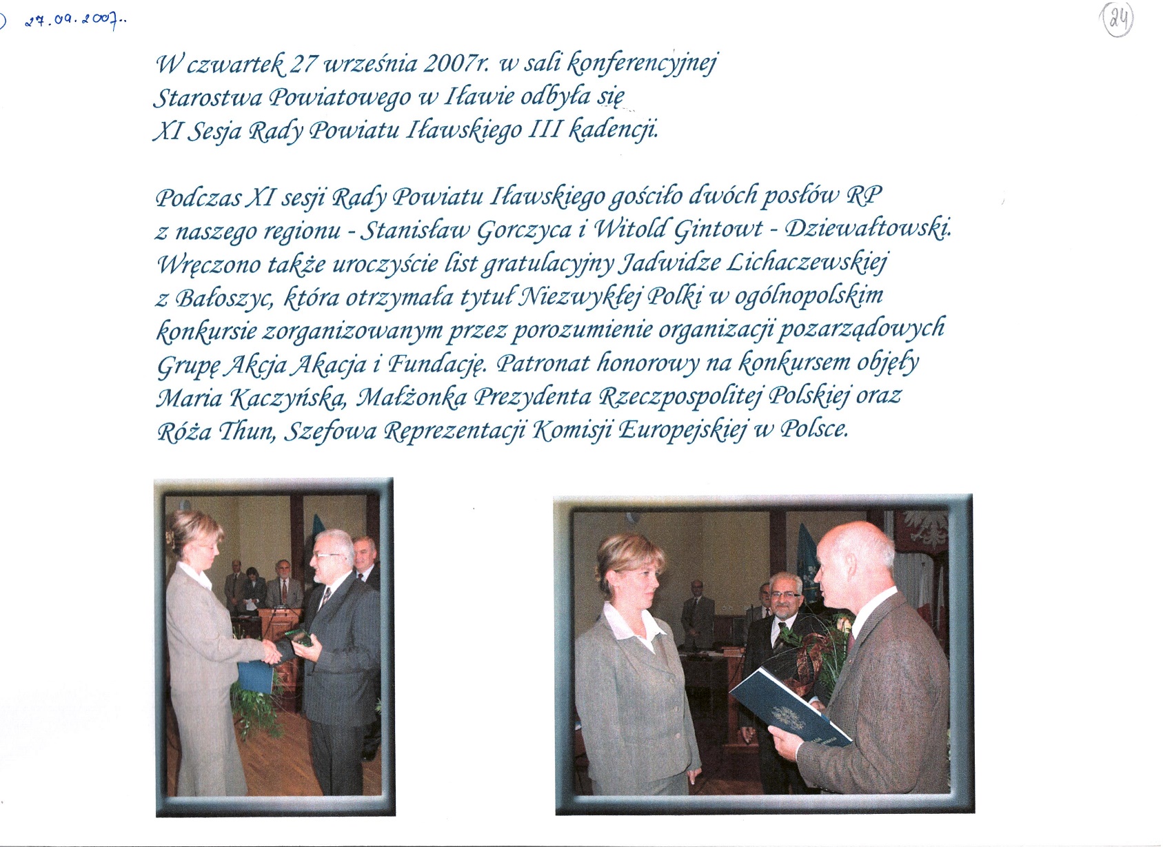 Nazwa dokumentu: Kronika Zarządu i Rady Powiatu Iławskiego (kadencja 2006-2010) s. 24