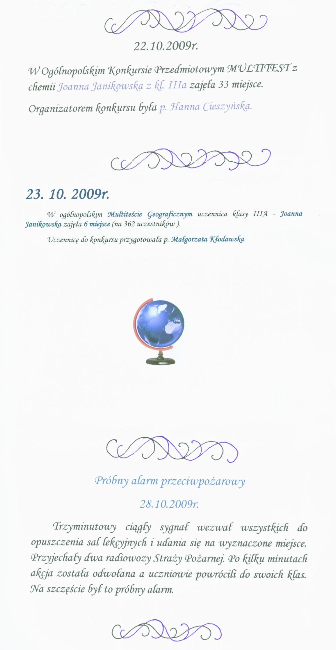 Nazwa dokumentu: Kronika Gimnazjum Samorządowego nr 1 (2006-2010) s. 160
