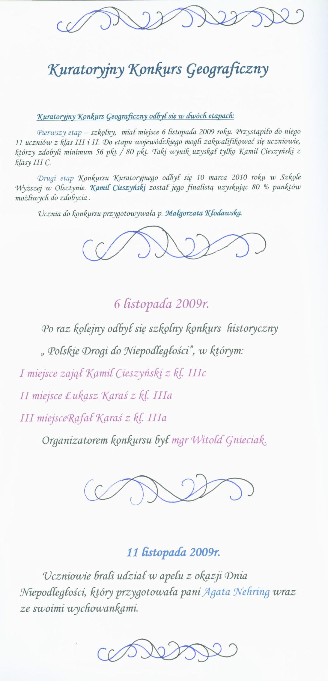 Konkurs geograficzny i historyczny.