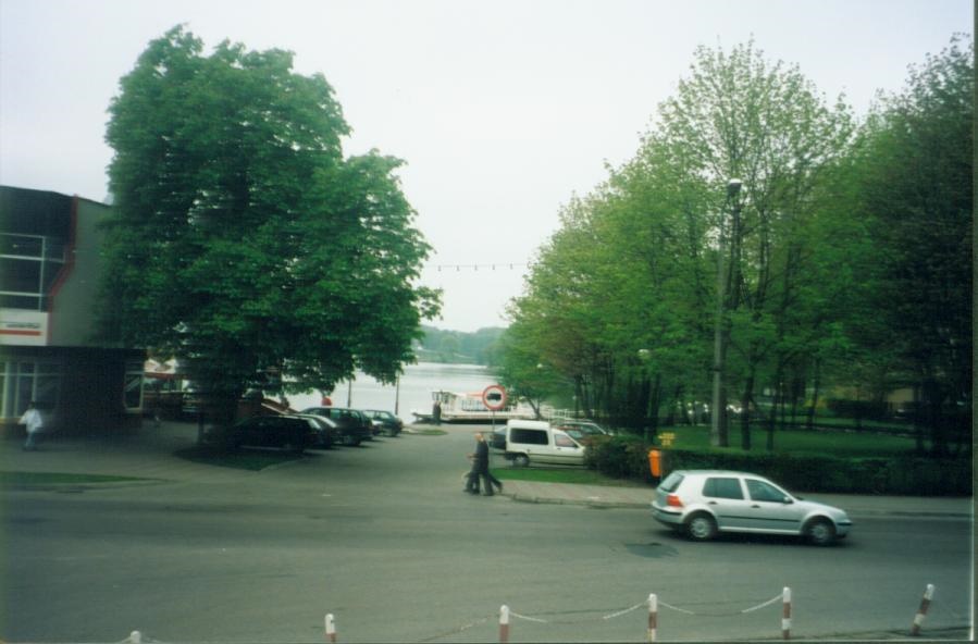 po lewej fragment Domu Handlowego "pod Kasztanem" (dawniej na parterze od strony jeziora mieściła się restauracja YELLOW, obecnie - U Czapy). Po prawej park, obecnie przebudowany - funkcjonuje tu fontanna.