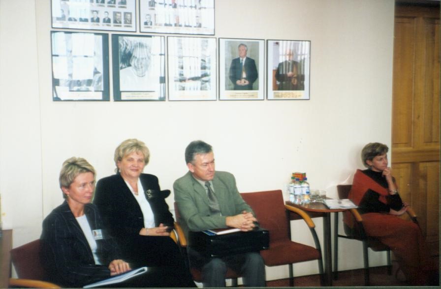 Siedzą (od lewej): Bogusława Bandelewska (urzędniczka z ratusza), Bogumiła Bielewska (prezes EKO), Andrzej Orzechowski (prezes Zakładu Komunikacji Miejskiej w Iławie) oraz Bernadeta Hordejuk