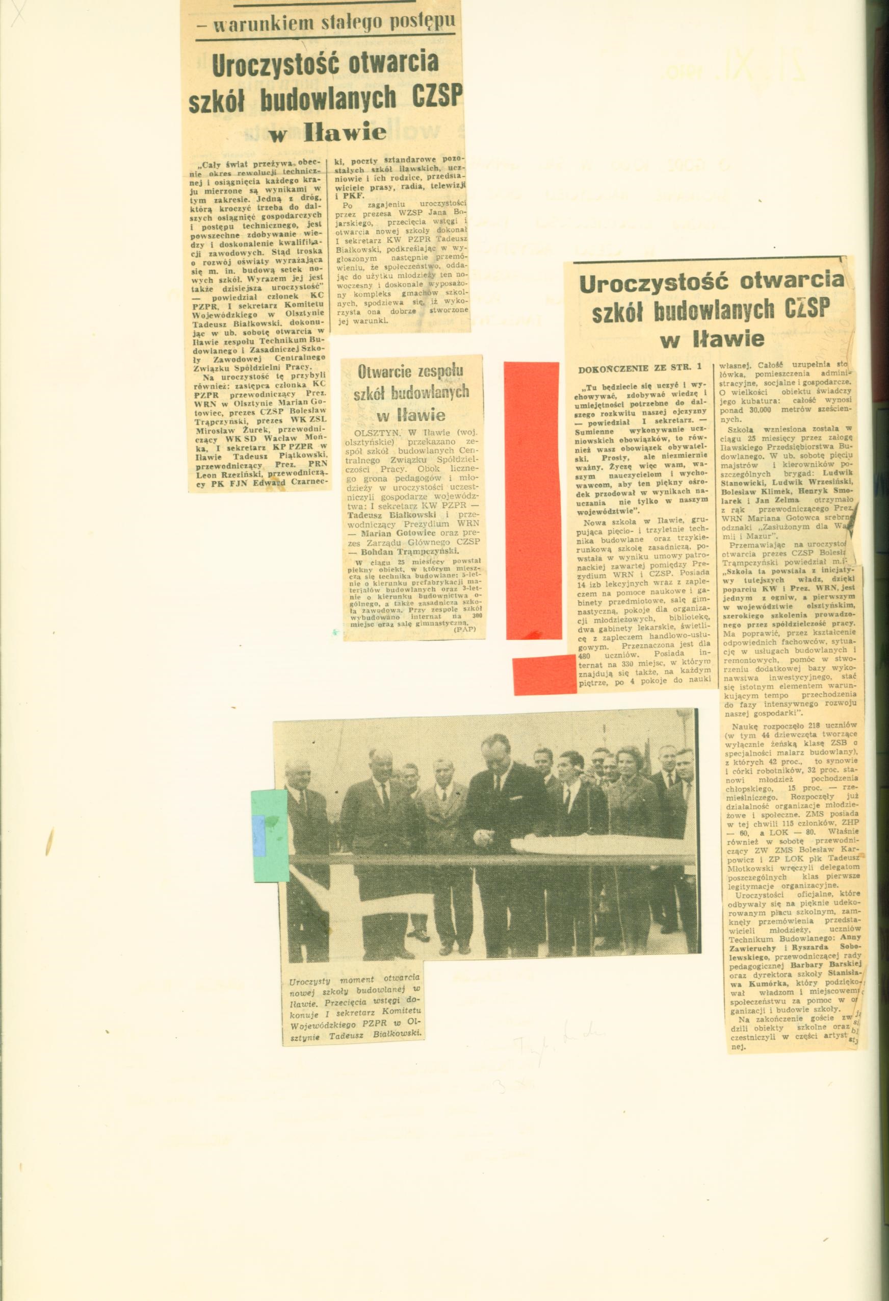 Folder: Kronika Technikum Budowlane i Zasadnicza Szkoła Budowlana w Iławie (1970-76)