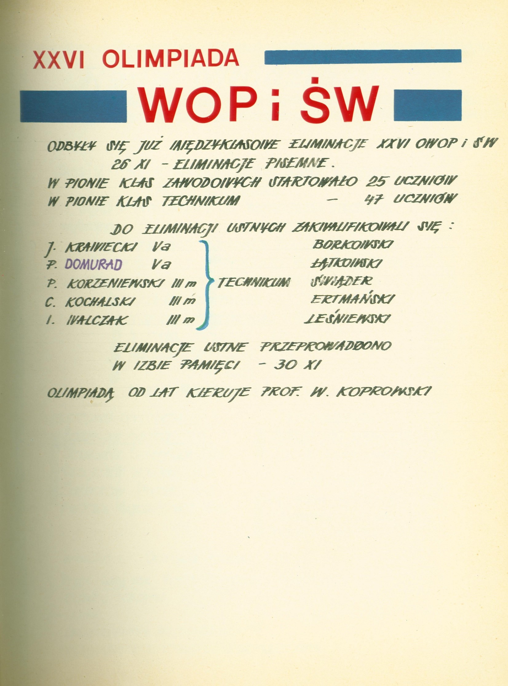 Dział: Kroniki szkolne