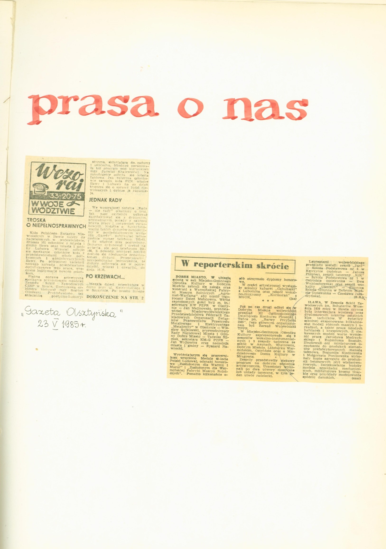 Dział: Kroniki szkolne