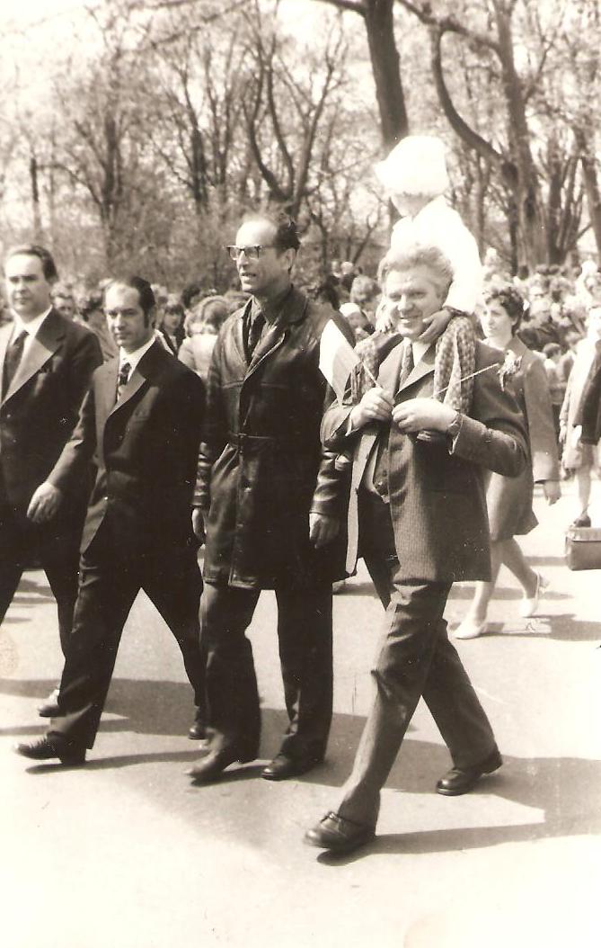 Pochód pierwszomajowy 1971, Szpital Miejski z Iławie, widoczni od lewej: dyrektor Franciszek Stanibuła, Remigiusz Ramel, nn, Zenon Olszewski