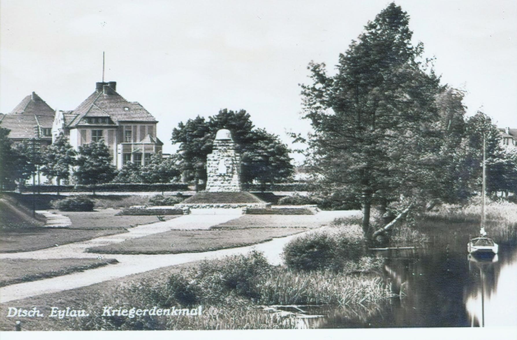 Deutsch Eylau. Pomnik wojenny. Dzisiejszy skwerek S. Żeromskiego. Po lewej widoczna willa oficerska.